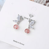 Stud Earrings Women Korean Fashion Sweet Strawberry Crystal Butterfly