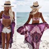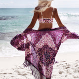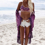 Chiffon Beach Resort Wear Purple Orientation Flower Beach Bikini