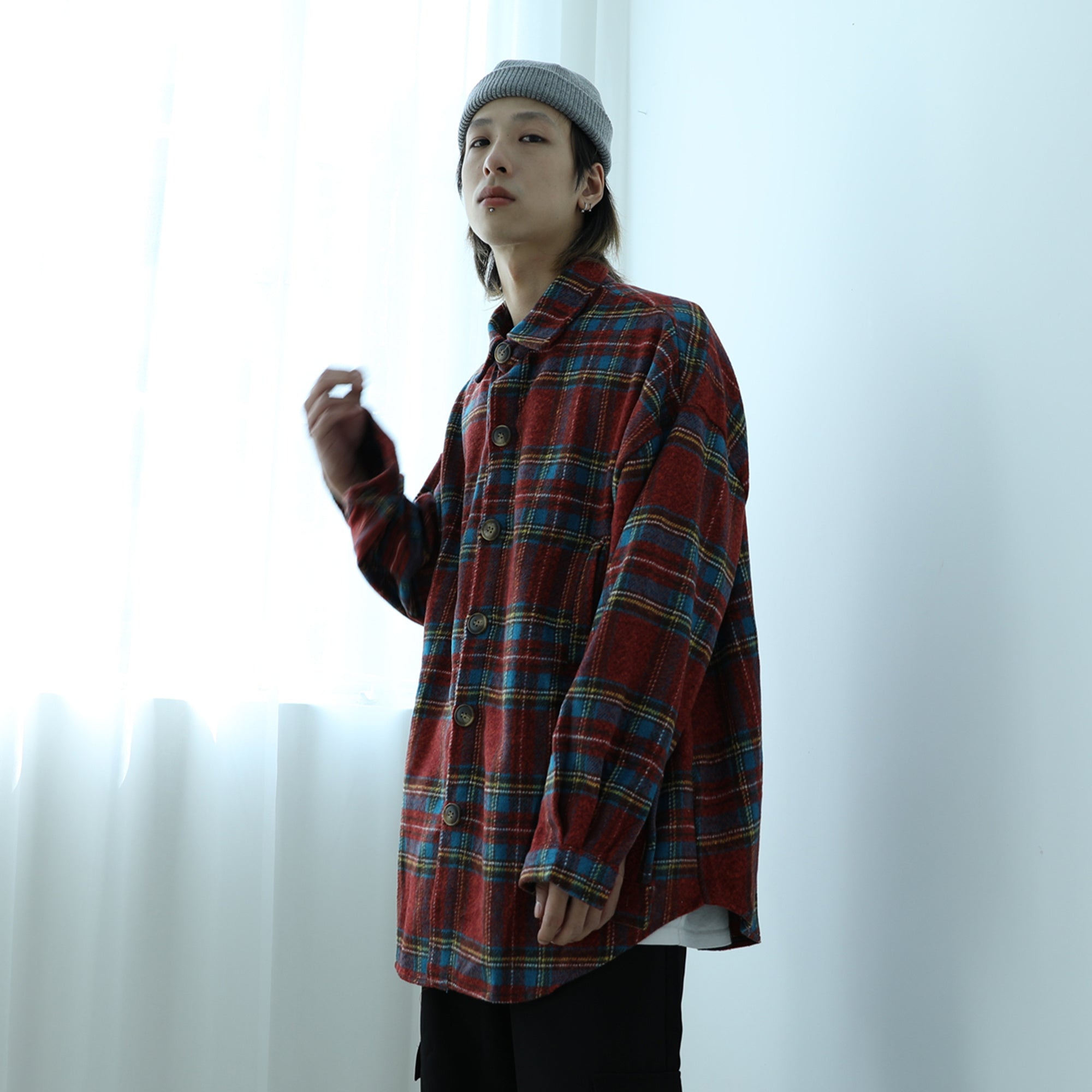 Color plaid shirt men and women retro thick woolen cloth