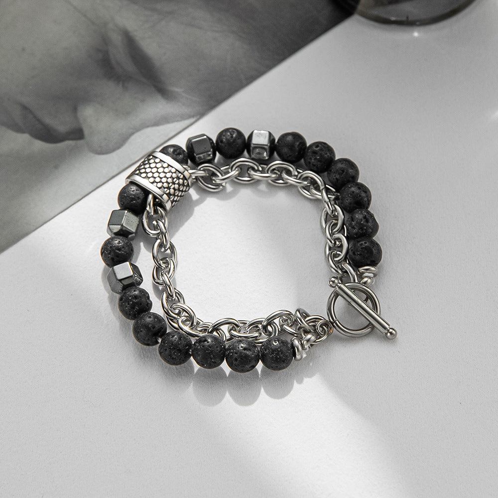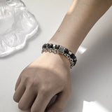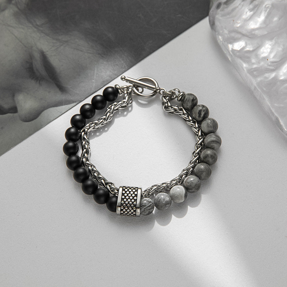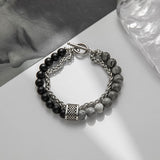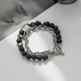 Natural Stone Frosted Bead Chain Beaded Titanium Steel Bracelet